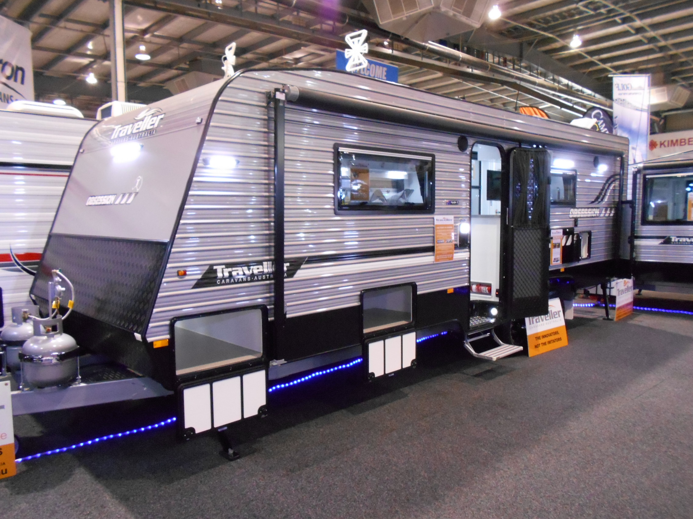 The 23’ Traveller Obsession "Lincoln" features a Angled Kitchen for Bench Space and most Importantly features a Massive Bathroom at the Rear of the Caravan.
