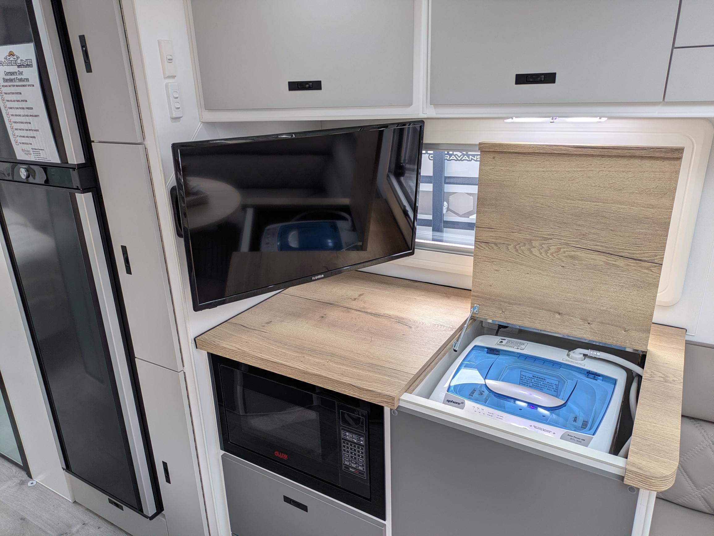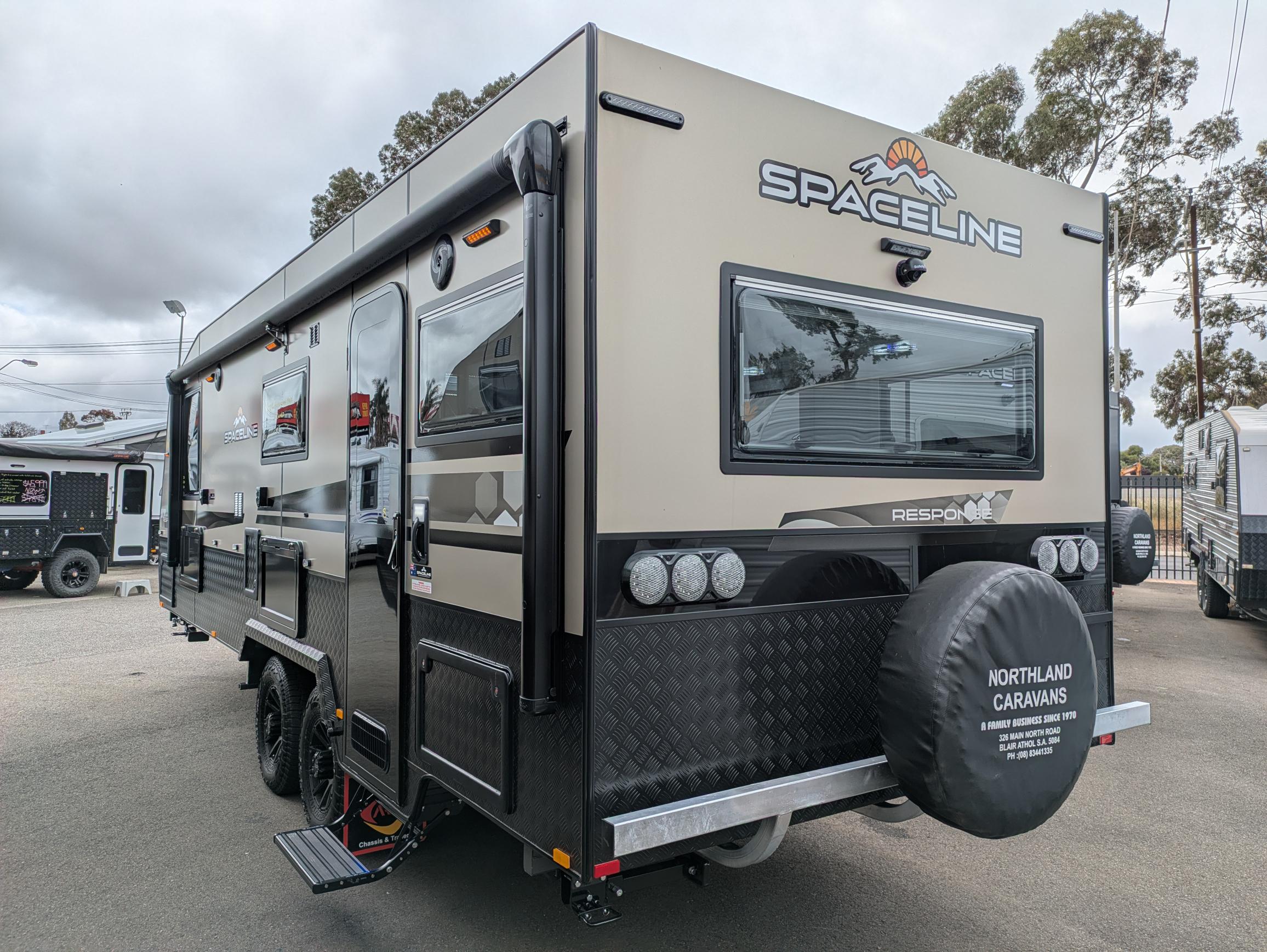 Presenting this 22'6 SPACELINE RESPONSE Grange' caravan with tunnel boot storage at the front and rear, high checker plate sides, twin outside picnic table, Electric awning, outside TV Compartment, non door side annexe track, door side bug lights and rear view camera on the outside. Walking in the Spaceline Response Grange you will find a comfy and entertaining Club lounge seat with a table that drops down to make a bed, Queen size Island bed with storage under bed, 12v Compressor 224lt fridge, 240v and gas hot water service, plently of storage and bench space, angled kitchen, recessed oven with range hood, microwave and separate shower and toilet with top loading washing machine. Powering the caravan is a twin battery system with twin solar panel.
