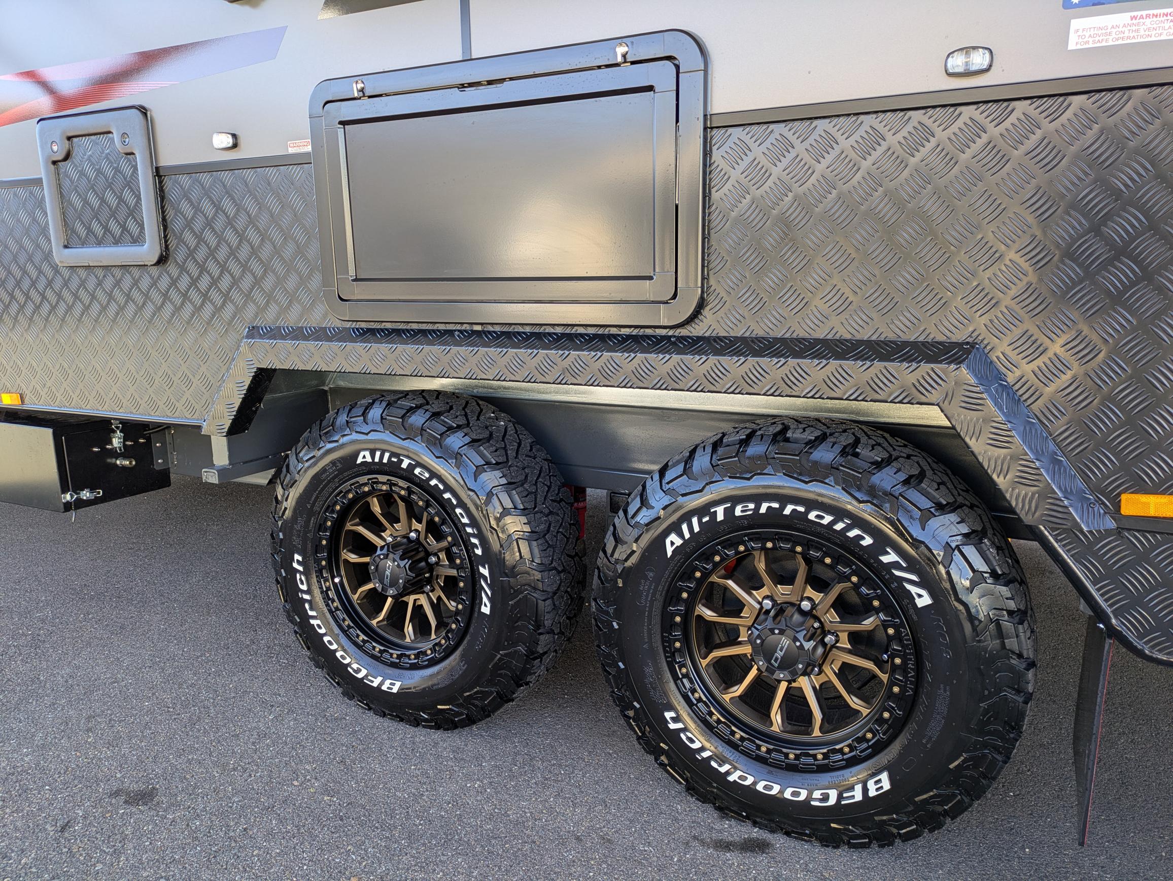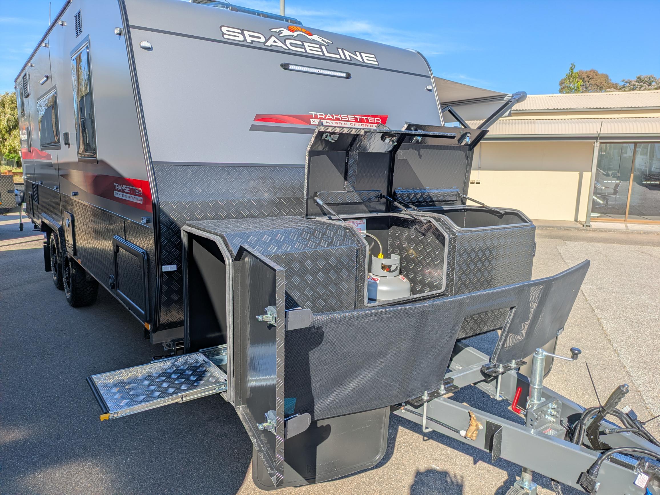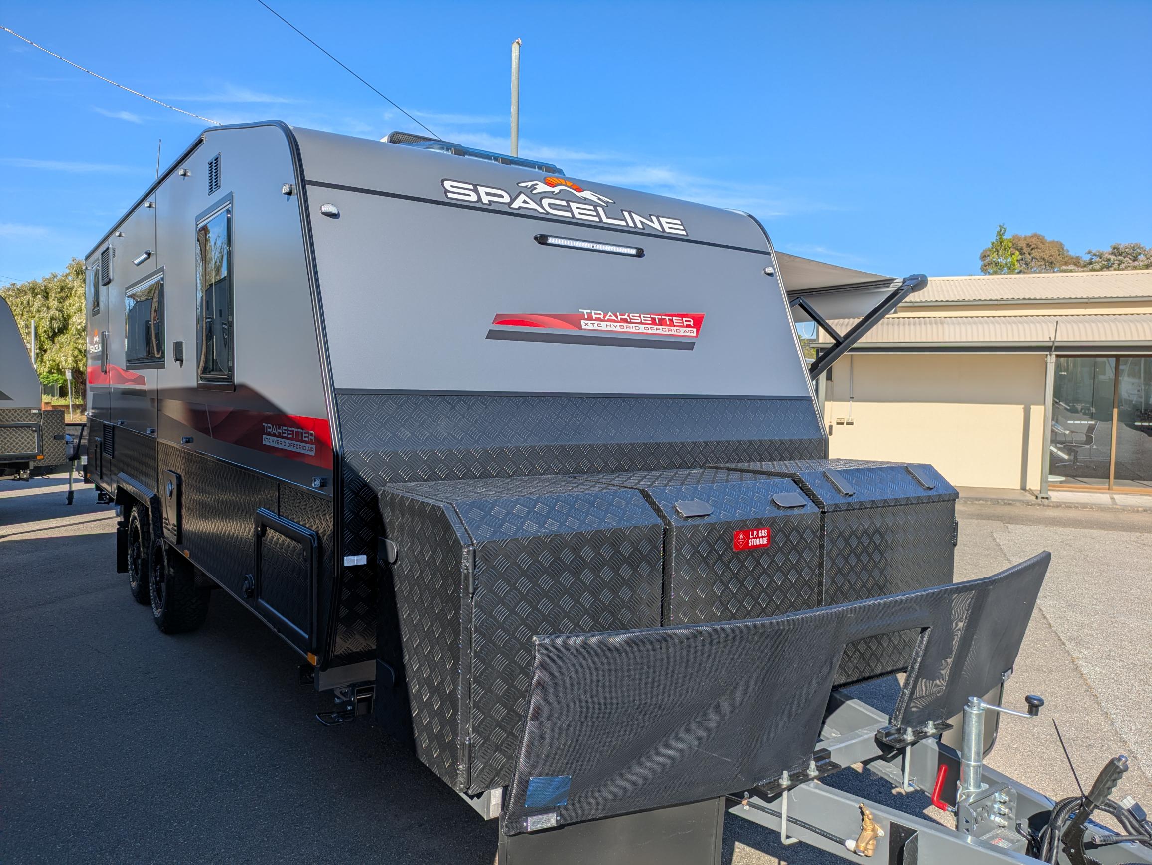 Presenting this 21'6 SPACELINE XTC AIR TRAKSETTER 'Sunseeker' RV Ensuite Caravan with Starlink Roof Mounted, 16 inch Wheels and BF Goodrich premium tyres, Titan-X Independet Suspension, Air Bag Suspension, tunnel boot storage, storage behind shower for table and chairs, high checker plate sides, outside picnic table, Electric awning, non door side annexe track, door side bug lights and rear view camera on the outside. Walking in the SPACELINE XTC AIR TRAKSETTER 'Sunseeker' RV Ensuite Caravan you will find side club seating arrangement with a drop down table, Queen size Island bed with storage under bed, 12v Compressor 224lt fridge, instant gas hot water service, plenty of storage and bench space, Recessed Oven with range hood, microwave and separate shower and toilet with top loading washing machine. Powering the caravan is a 630amp Lithium battery system with four 210w each solar panel ( 840w in total) and an Redarc 3000w Inverter to run the caravan and the Redarc Alpha 50 charging system.
