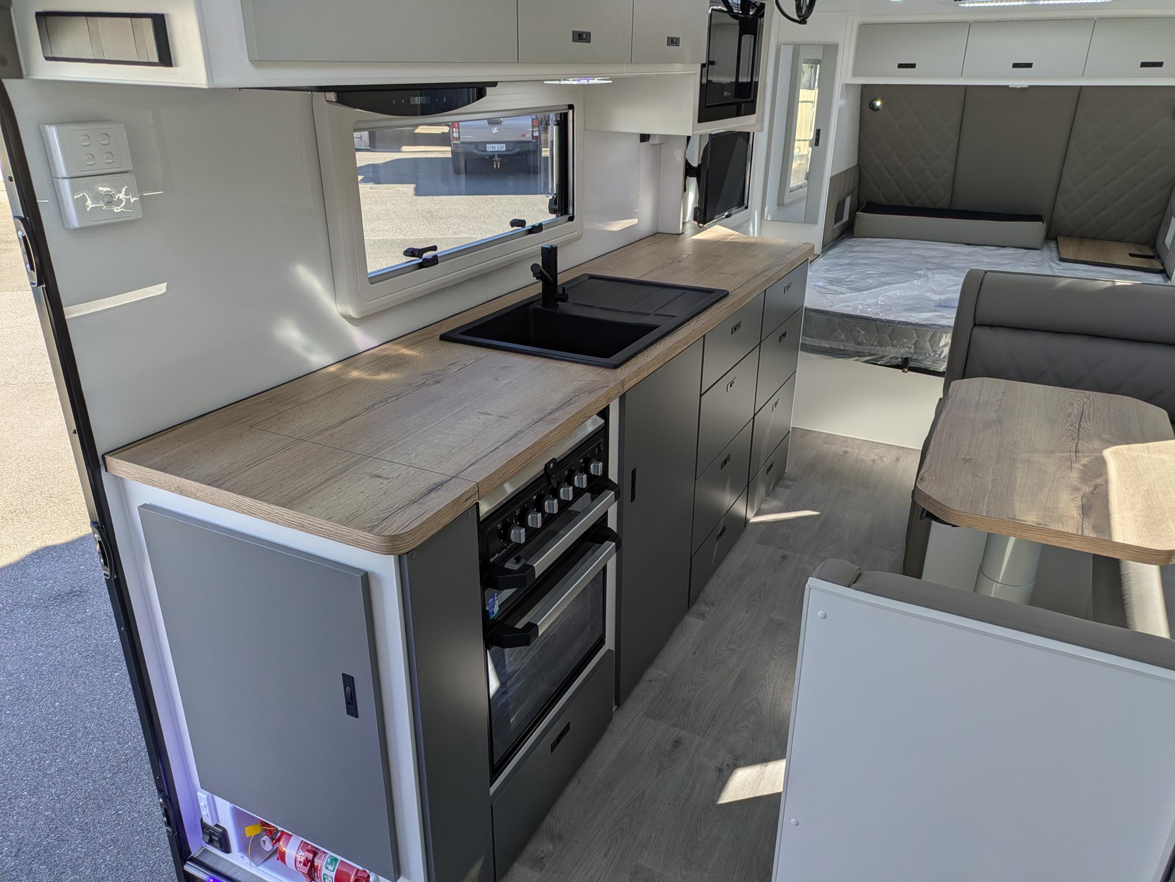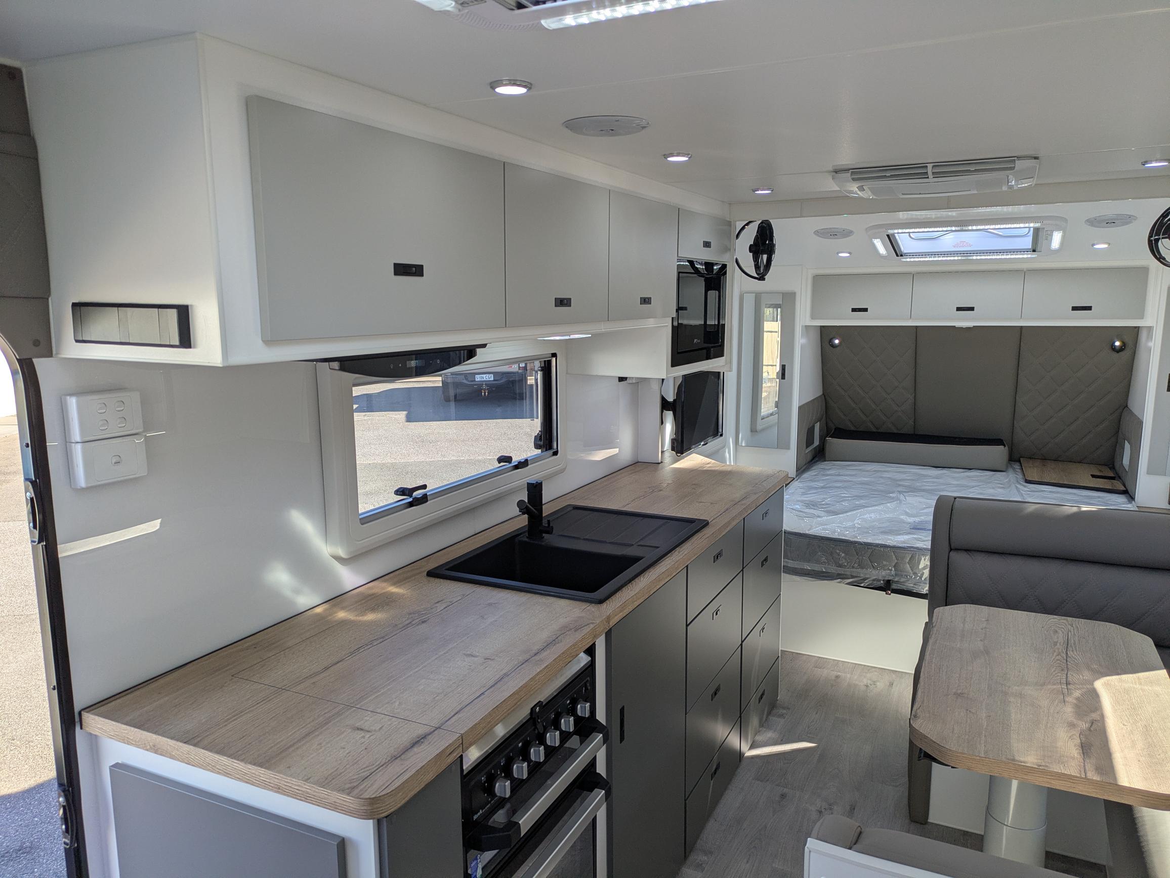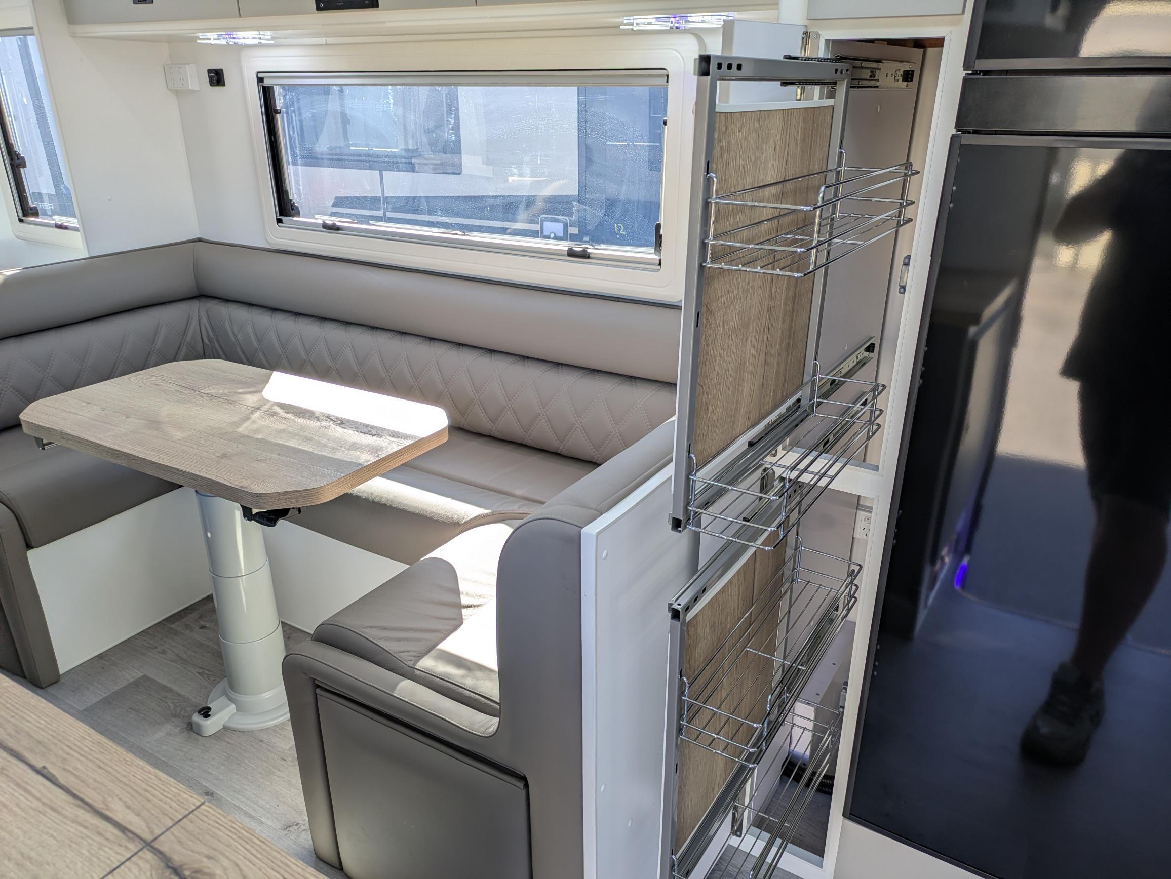 Spaceline Caravans are equipped with only the best products throughout using RV brand names such as Redarc, Dometic, Camec, Fusion, Safety Dave, Sphere and 100% Genuine Leather Upholstery just to name a few.