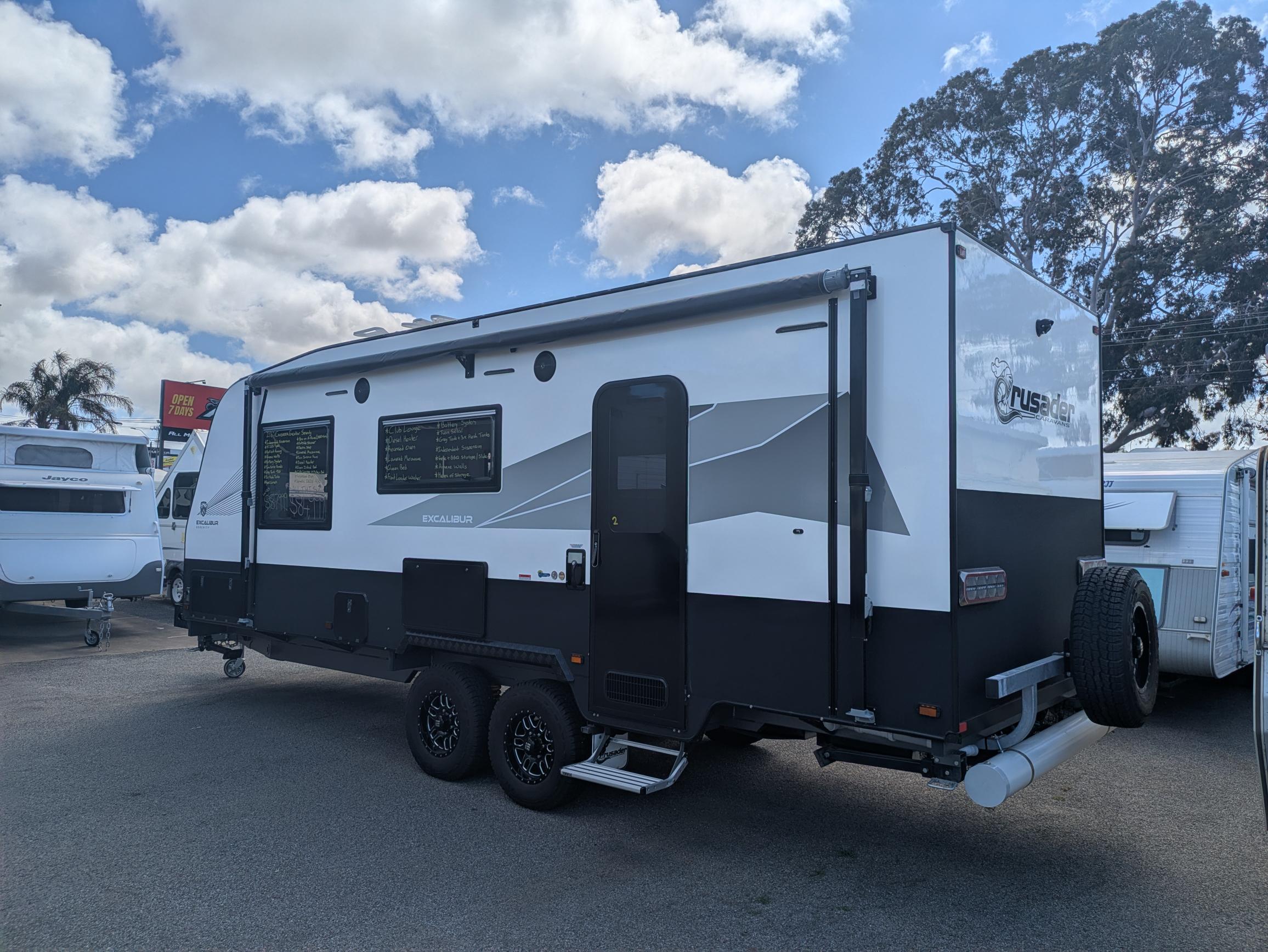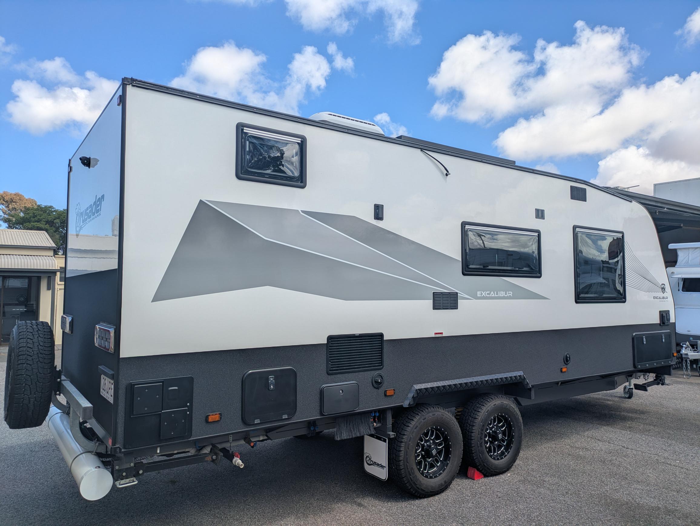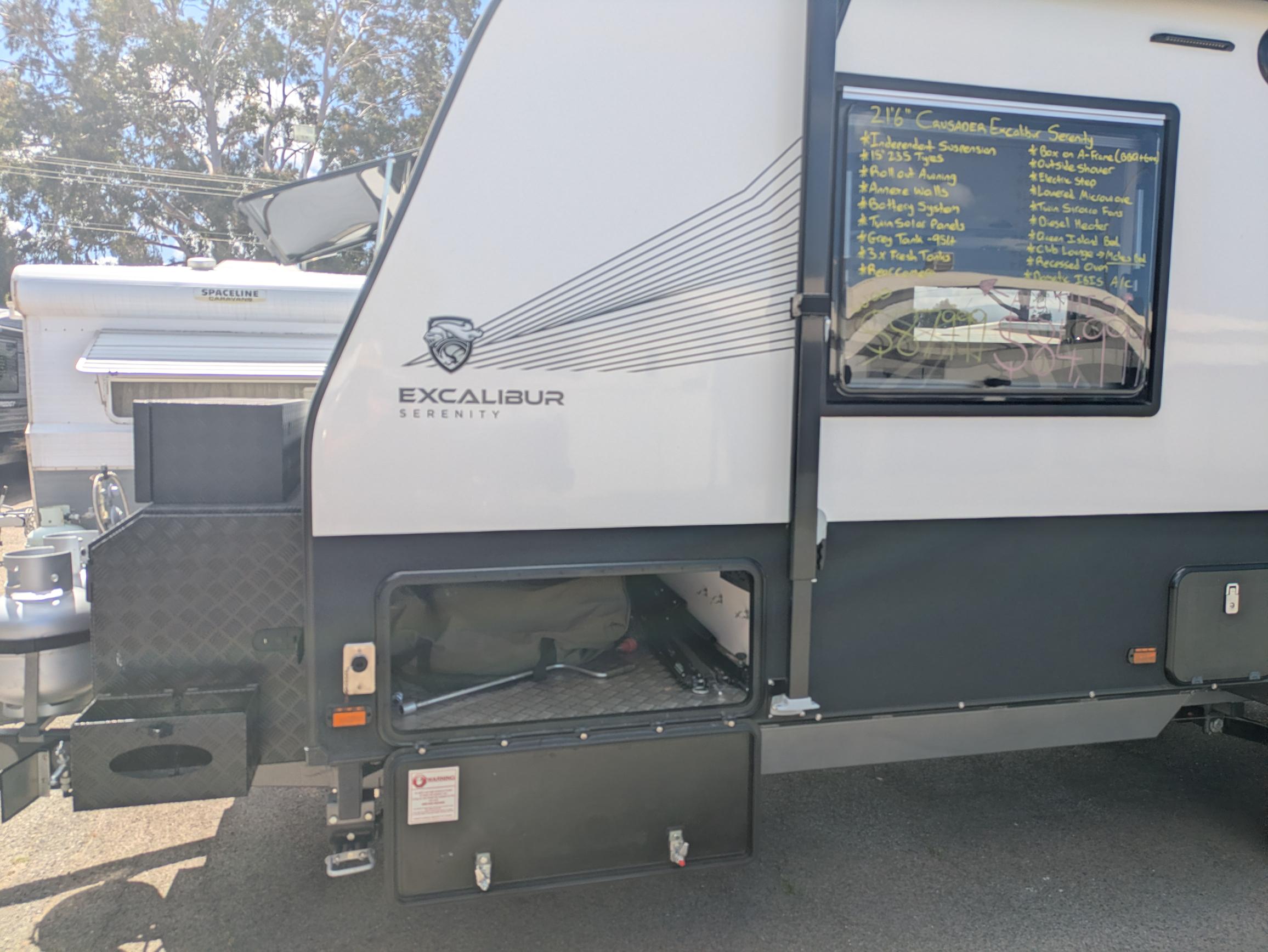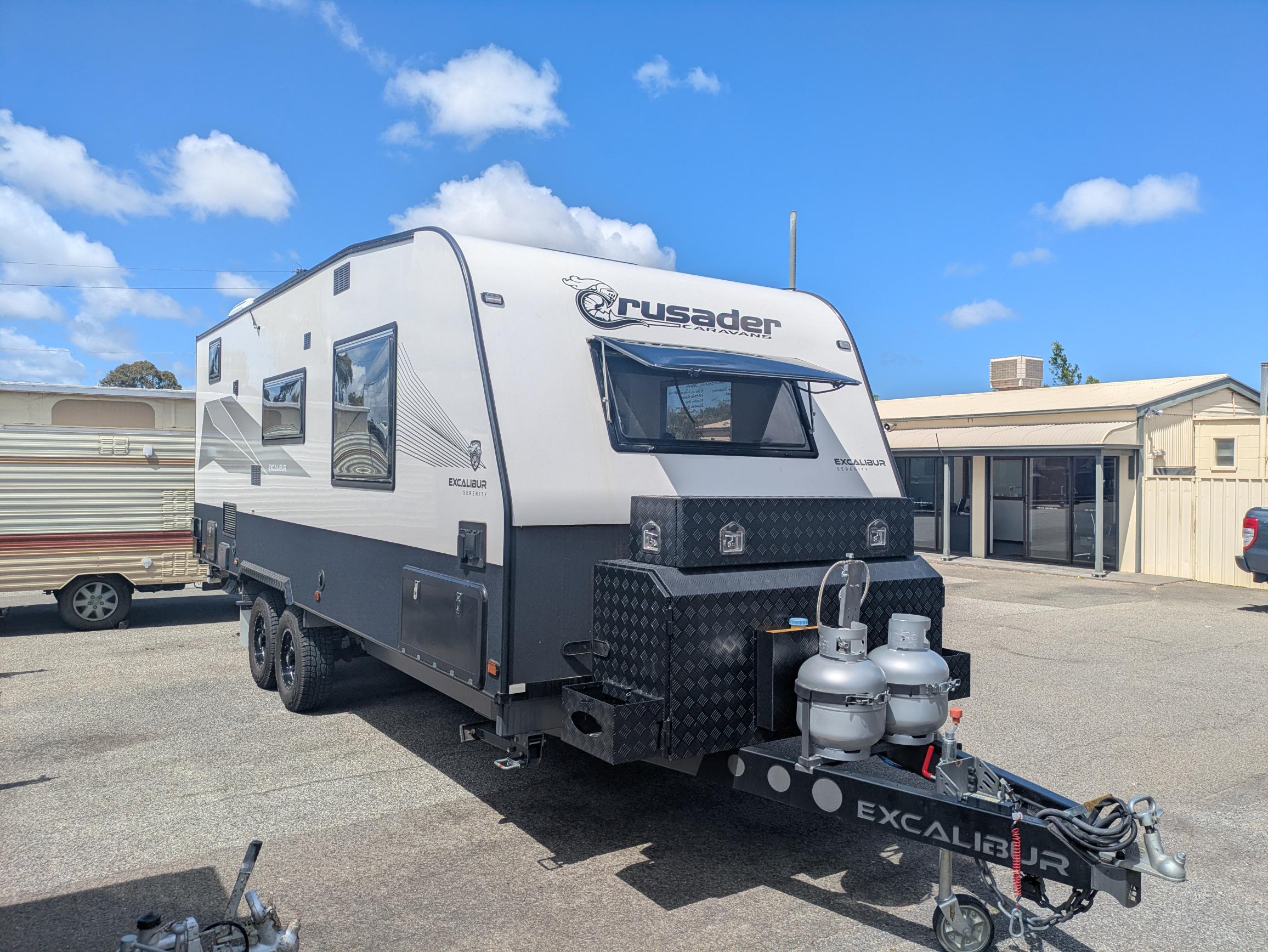 This Crusader Excalibur Serenity 21ft 6 Off Road caravan has so many features you won't believe it. Some of the great features you will find is Independent Suspension, Box on A-Frame, Tunnel Boot Storage, Twin Solar Panels, Battery System, Roll out Awning, Annexe Walls, Side club lounge, Diesel Heater, Dometic IBIS 4 Reverse Cycle Air Con, 224lt 3 Way Dometic Fridge, Block Out Windows, Fresh tanks and grey tank, Rear Camera System, Electric Step, ESC for piece of mind and the list goes on. Very neat and tidy caravan with so many features, we don't expect this one to last long. Be quick before it sells.