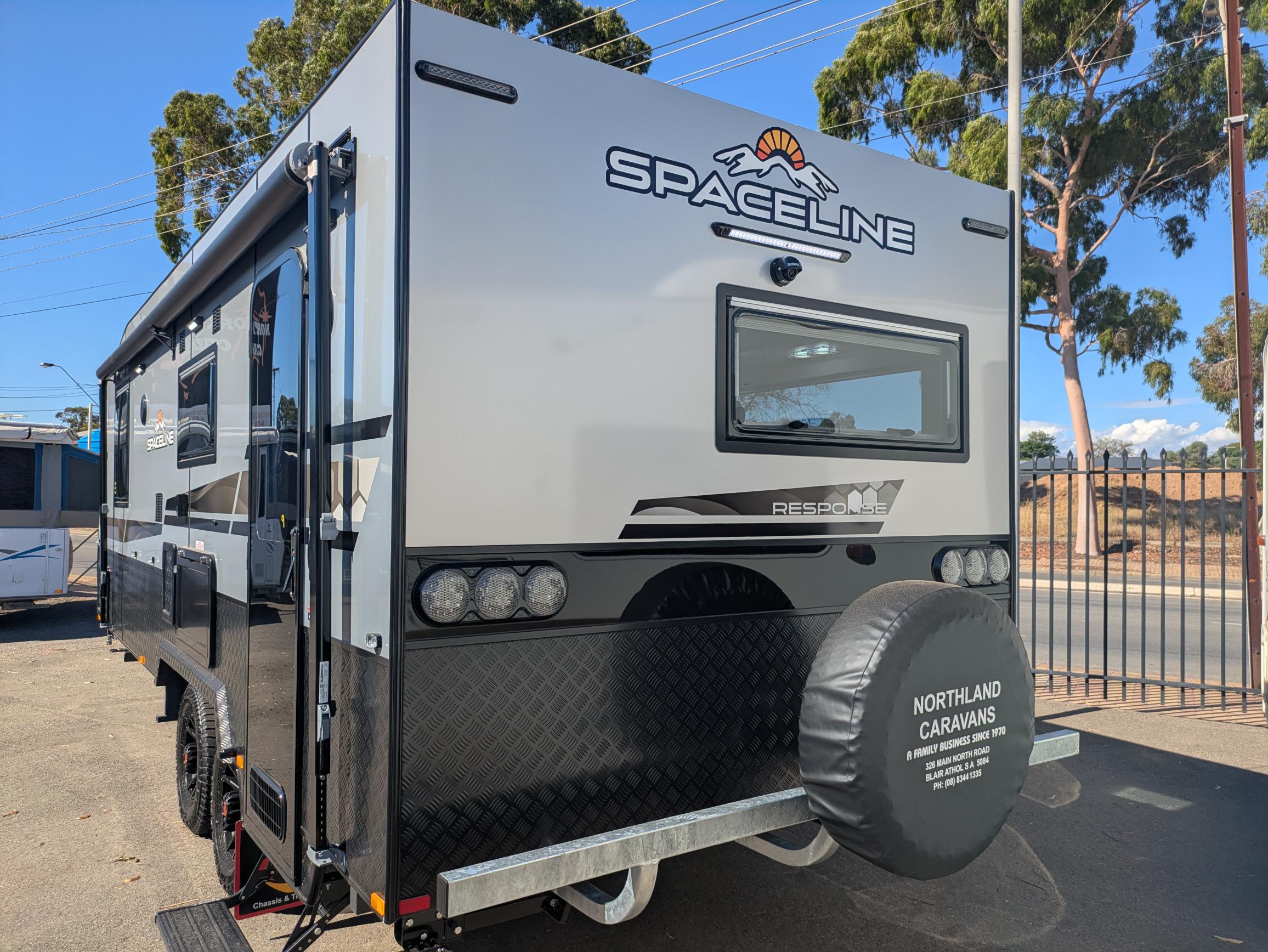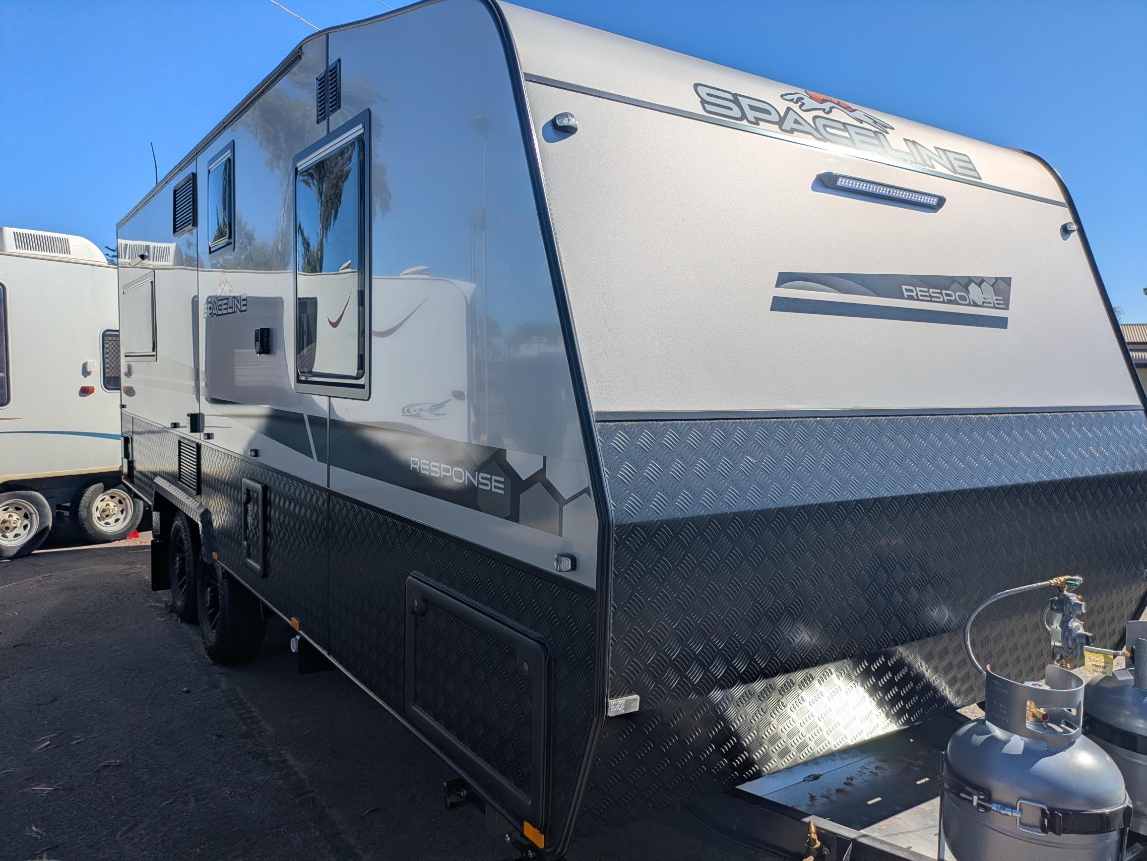 Presenting this 21' SPACELINE RESPONSE 'Barossa' caravan with tunnel boot storage, checker plate sides, outside picnic table, roll out awning, outside TV Compartment, non door side annexe track, door side bug lights, mesh in A-frame and rear view camera on the outside. Walking in the Spaceline Response Barossa you will find Cafe' Seating arrangement with tri folding table, Queen size Island bed with storage under bed, 3way 224lt fridge, 240v and gas hot water service, plently of storage and bench space, angled kitchen, recessed oven with range hood, microwave and separate shower and toilet with top loading washing machine. Powering the caravan is a twin battery system with twin solar panel.