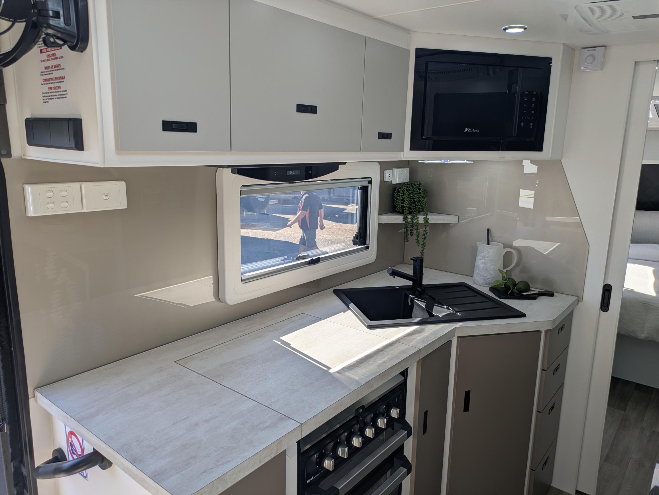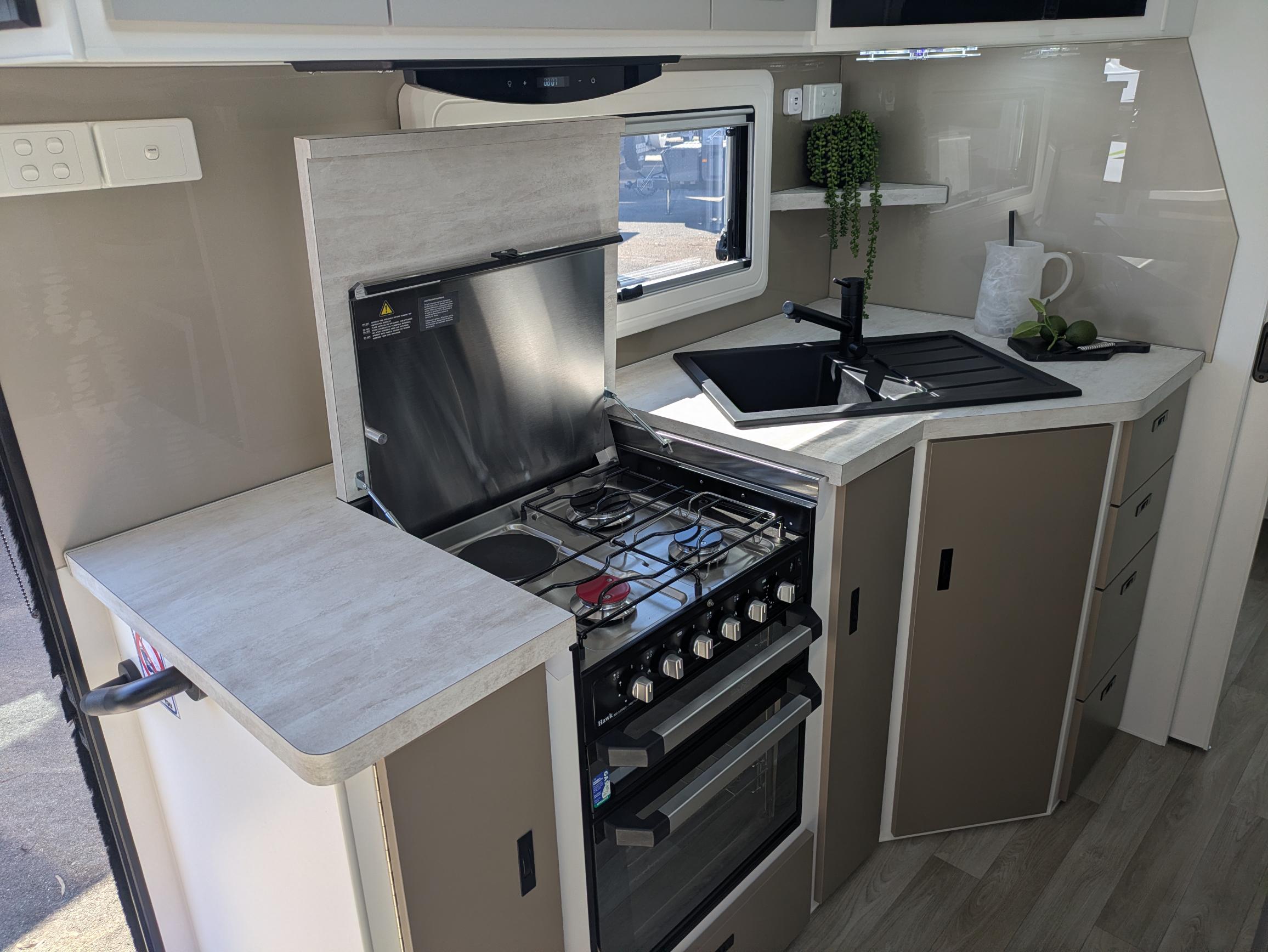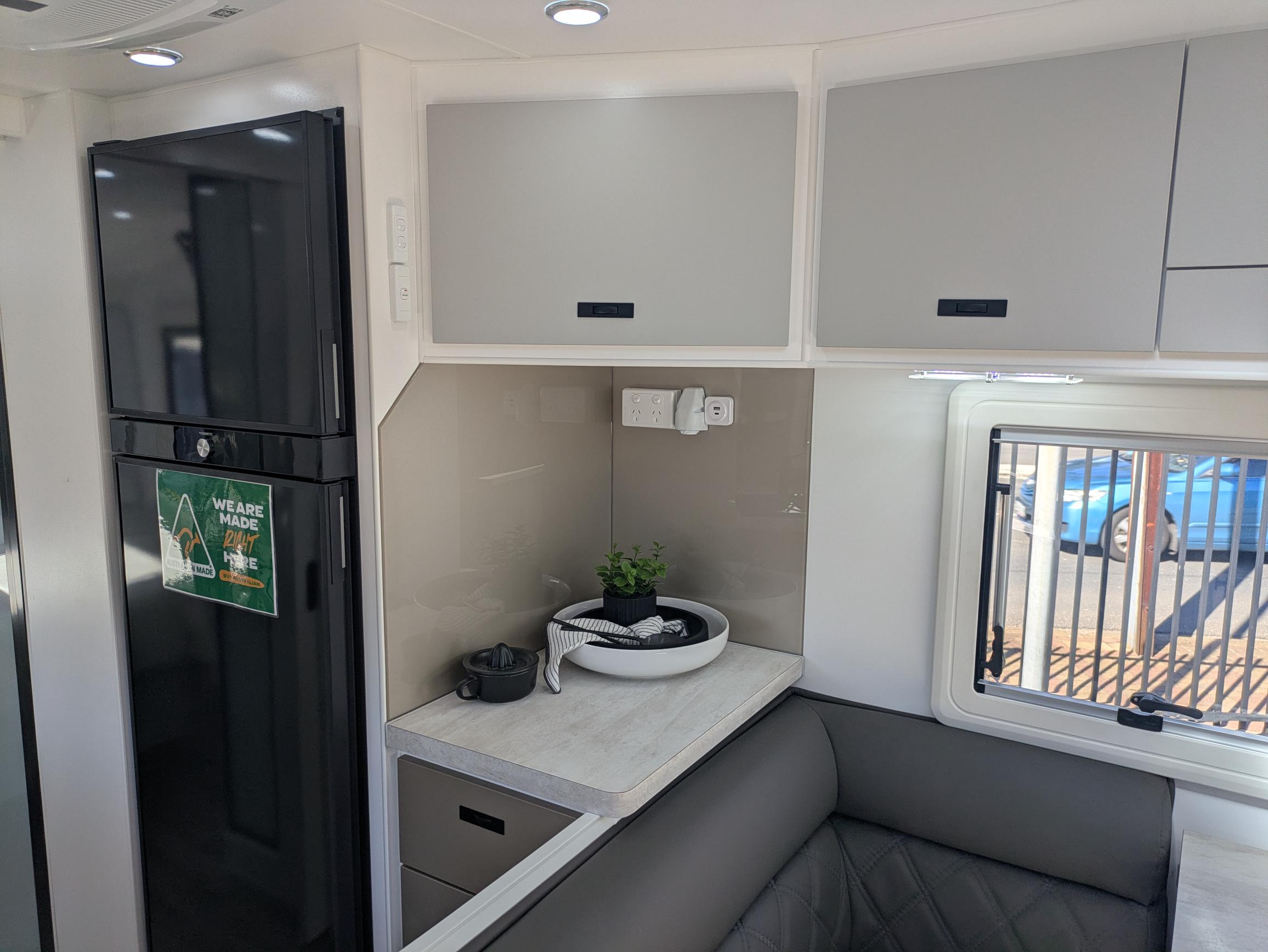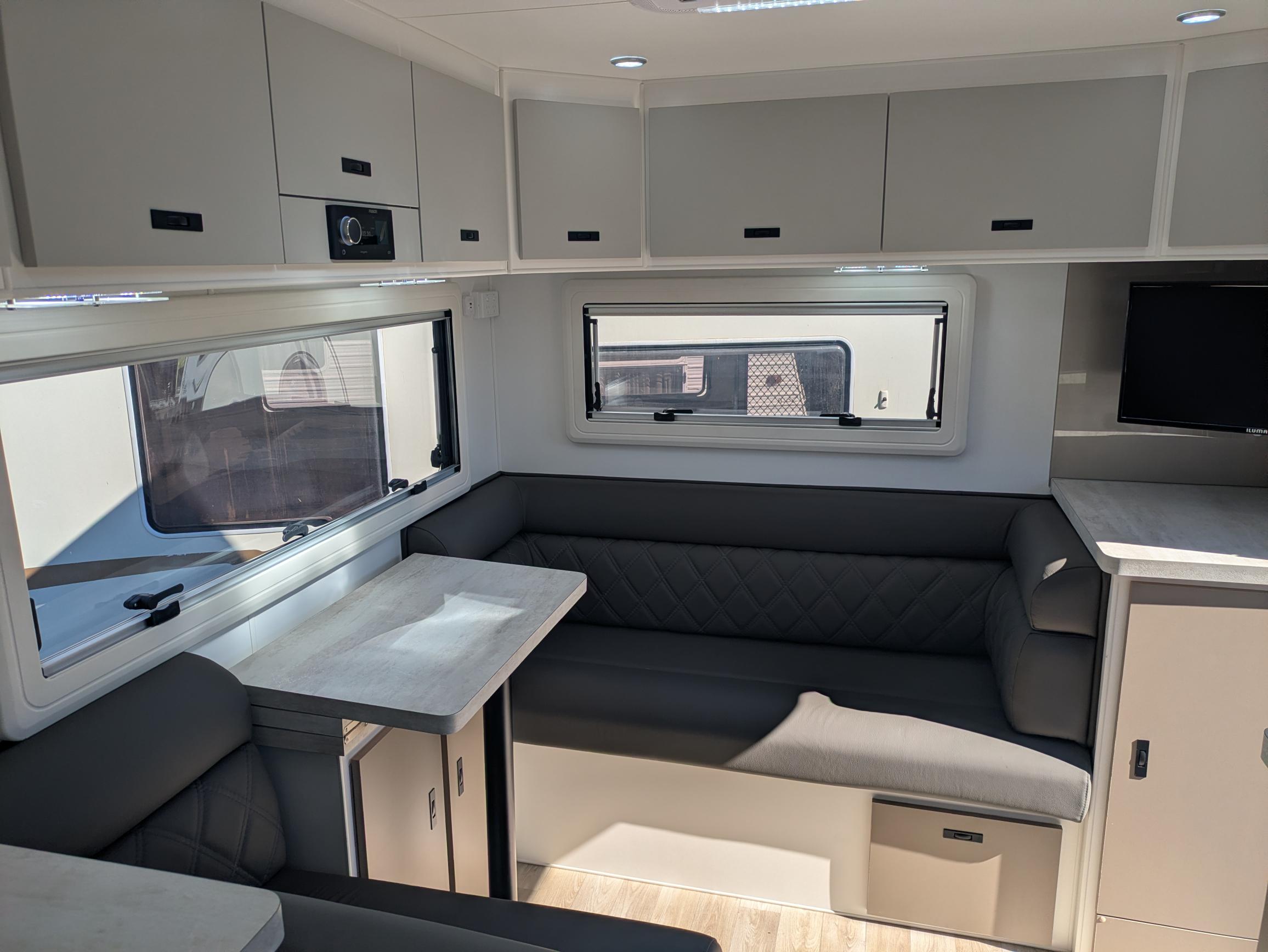 Spaceline Caravans are equipped with only the best products throughout using RV brand names such as Redarc, Dometic, Camec, Fusion, Safety Dave, Sphere and 100% Genuine Leather Upholstery just to name a few.